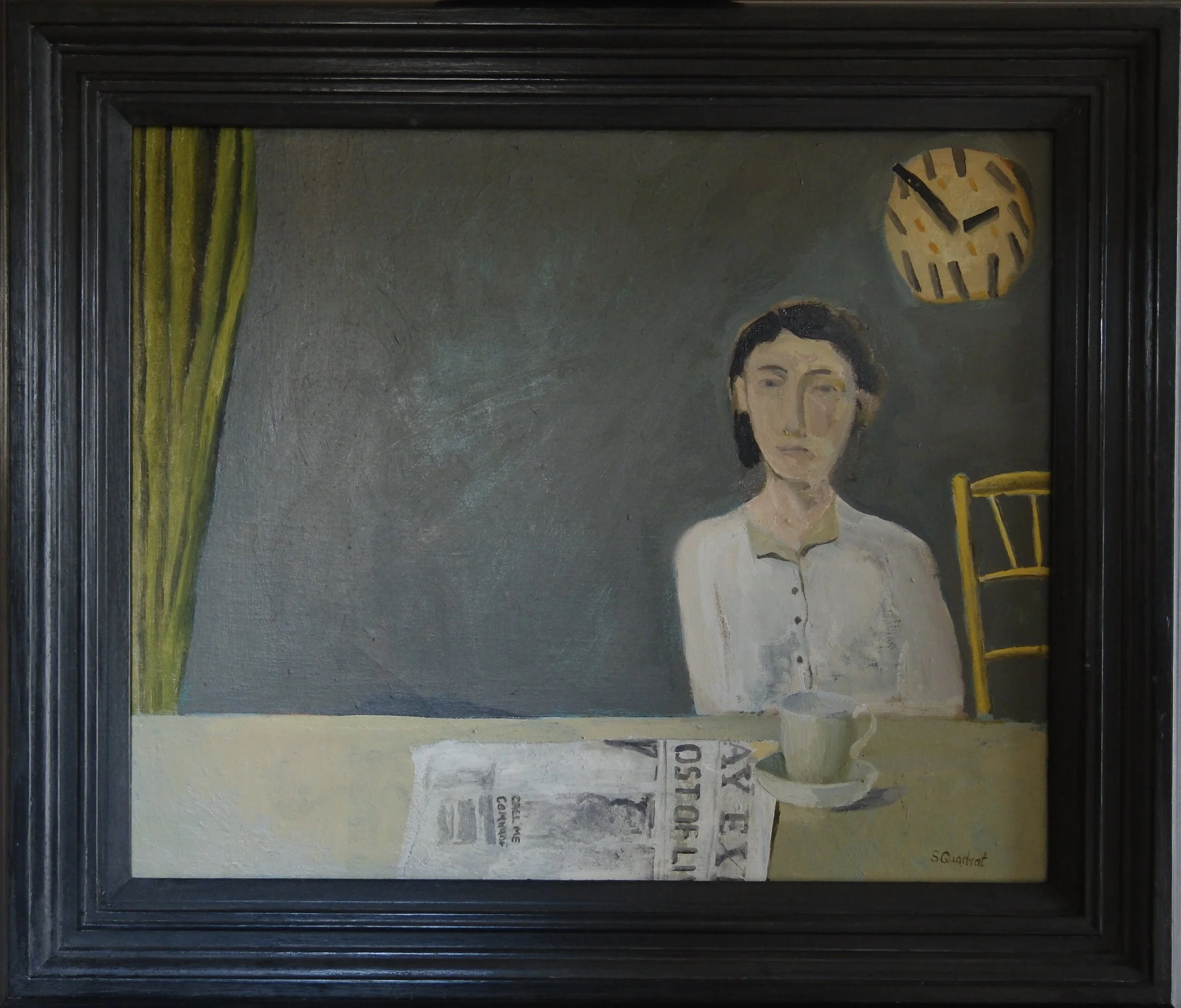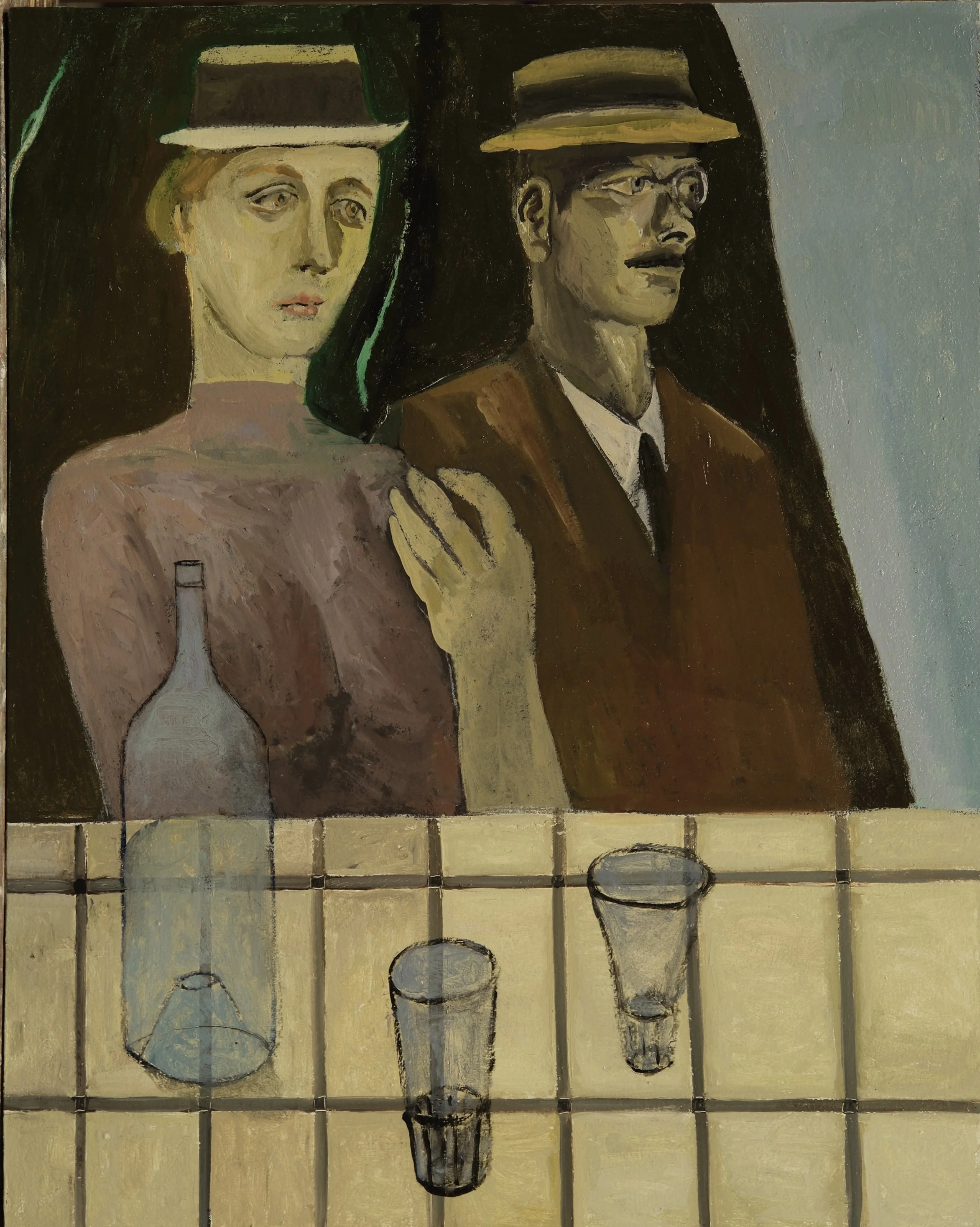 Simon soon found his voice, paintings based on his imagination and memory, partly reflecting his earlier life in post war London but always reflecting his interest in the human condition expressed in a slightly unreal form. Whether still life, urban scenes or genre scenes, all imagined but rooted somewhere in reality and all permitting the viewer to attempt to complete the unfinished stories he tells.