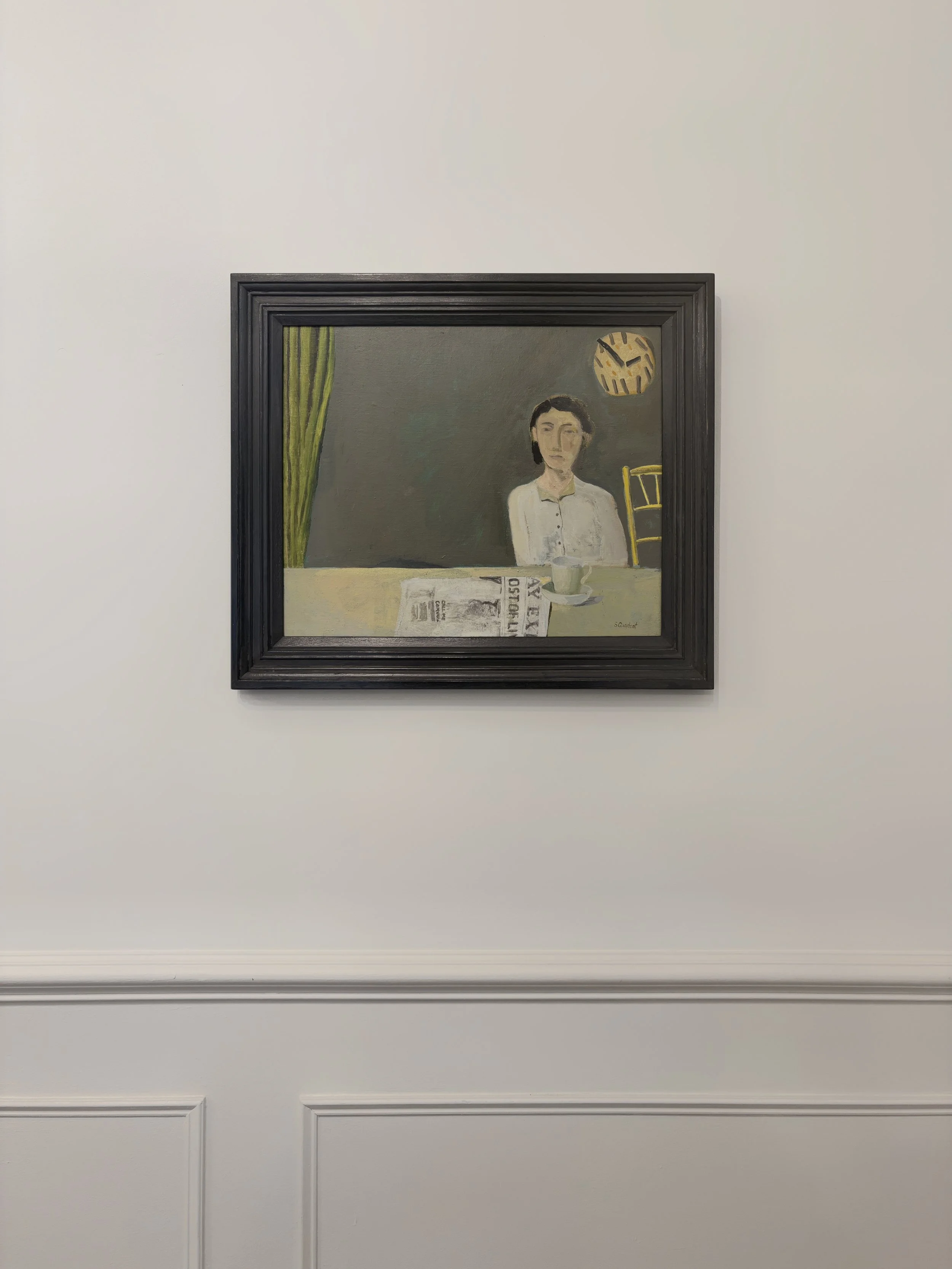 Simon soon found his voice, paintings based on his imagination and memory, partly reflecting his earlier life in post war London but always reflecting his interest in the human condition expressed in a slightly unreal form. Whether still life, urban scenes or genre scenes, all imagined but rooted somewhere in reality and all permitting the viewer to attempt to complete the unfinished stories he tells.